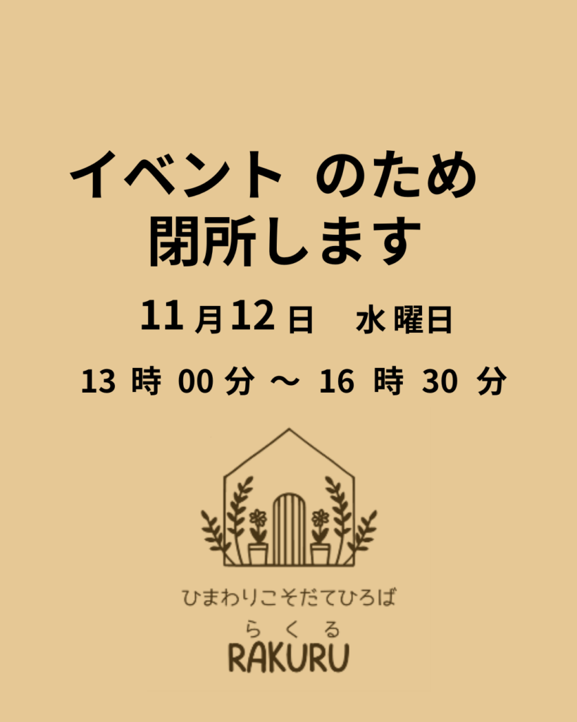 ホームお知らせ 11月12日のお知らせ 2025年11月4日 SHARE ポスト シェア はてブ LINE 【お知らせ】 イベント開催のため、11月12日(水)は13時より閉所いたします。午前中は通常どおりご利用いただけます。 ご理解のほどよろしくお願いいたします。