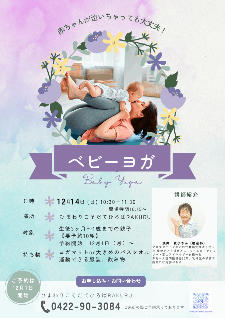 マームガーデンリゾート葉山アドバイザー浅井先生によるベビーヨガの予約開始日です。